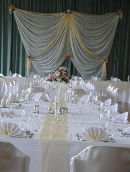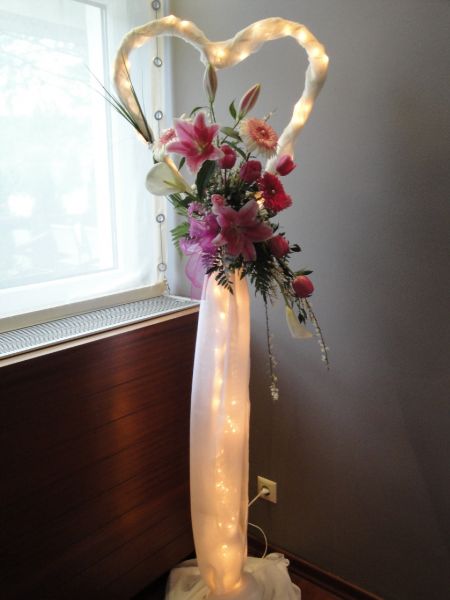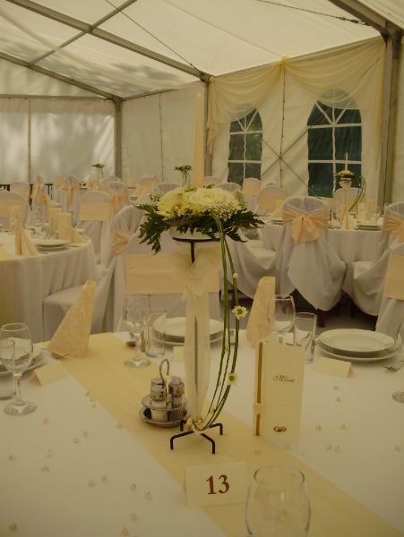 Leider besteht so eine Dekoration aus vielen kleinen und grösseren Komponenten, die schon kostspielig sein können, wir bieten Euch aber die Möglichkeit Materalien und Accesoires anzumieten, wie z. B: Kristallvasen, Kerzenständer und Dekorationsstoffe.